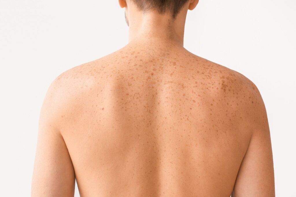 • Efélides ou sardas: manchas provocadas pelo excesso de melanina na pele, são mais frequentes em regiões mais expostas do corpo. Seu desenvolvimento é mais comum entre pessoas de pele clara, ruivas ou com alguma predisposição genética. Porém, o principal fator é a exposição solar excessiva, sem proteção adequada;
